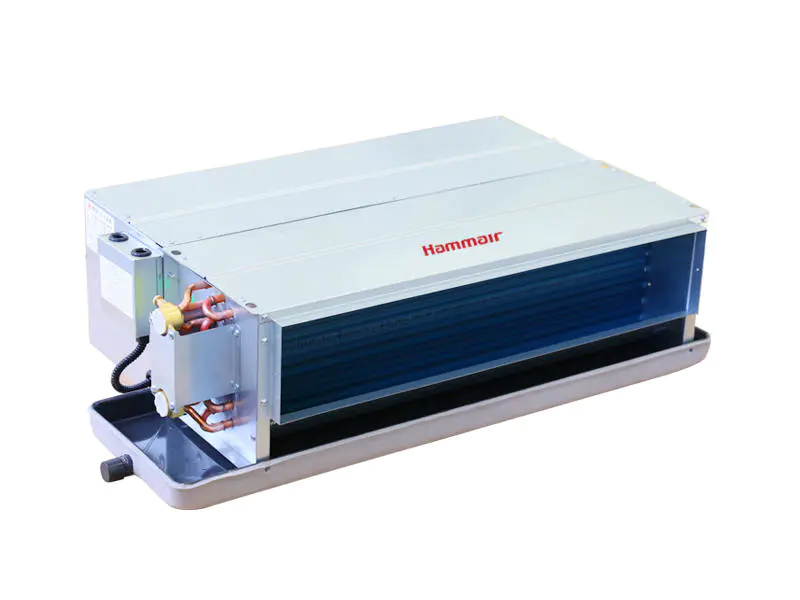 风机盘管热交换器采用优质Ø9.52mm铜管和高效亲水覆膜铝翅片,以及先进的胀管工艺,使铜管与铝箔达到理想接触;再配以大风量低噪声风机来强化传热,使机组能够发挥理想的传热效率。集水头采用黄铜锻造,使水流分布均匀并减少压头损失,进一步提高盘管整体传热效果。